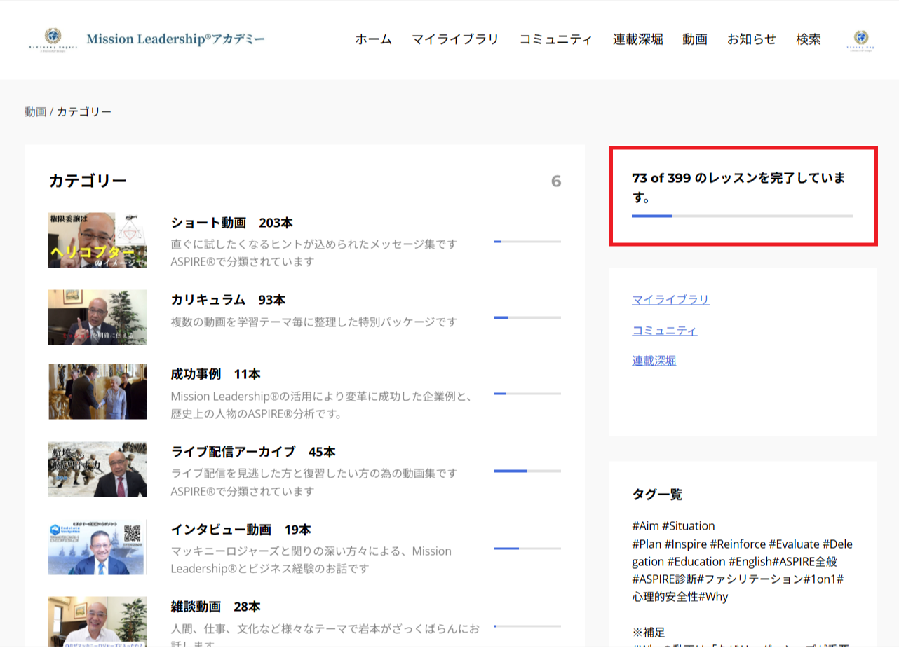ワークショップやコーチングに参加しないと体験出来なかったMission Leadership®を動画で学べます。ライブ配信アーカイブとショート動画はASPIRE®で分類されています。